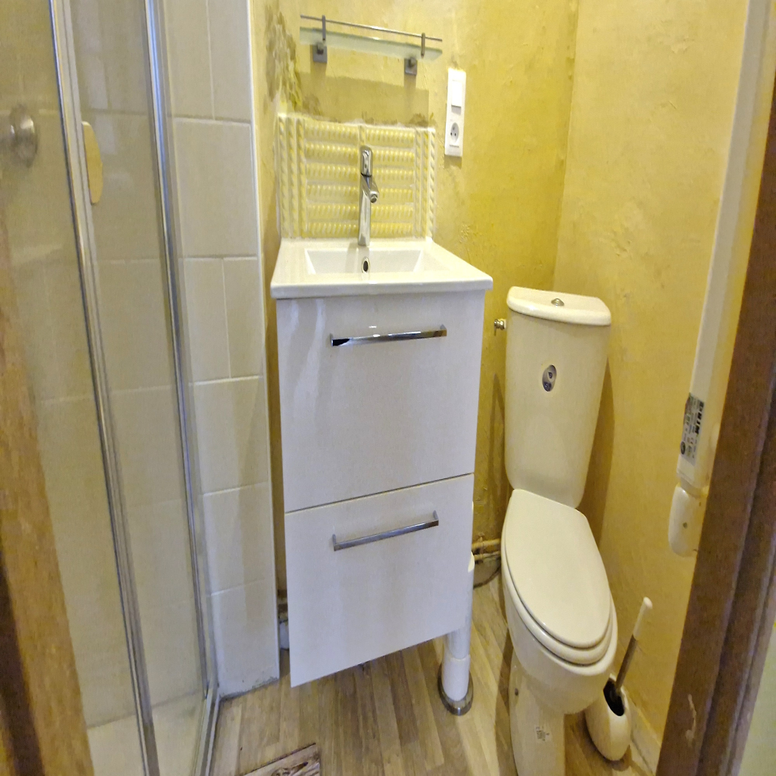 -Au RDC un entrée avec placard, un bureau (ou petite chambre de 9 m²) et 1 salle d'eau avec WC