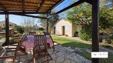 Grande terrasse attenante à la maison d’environ 35 m² accesible depuis la cuisine et la pièce de vie,