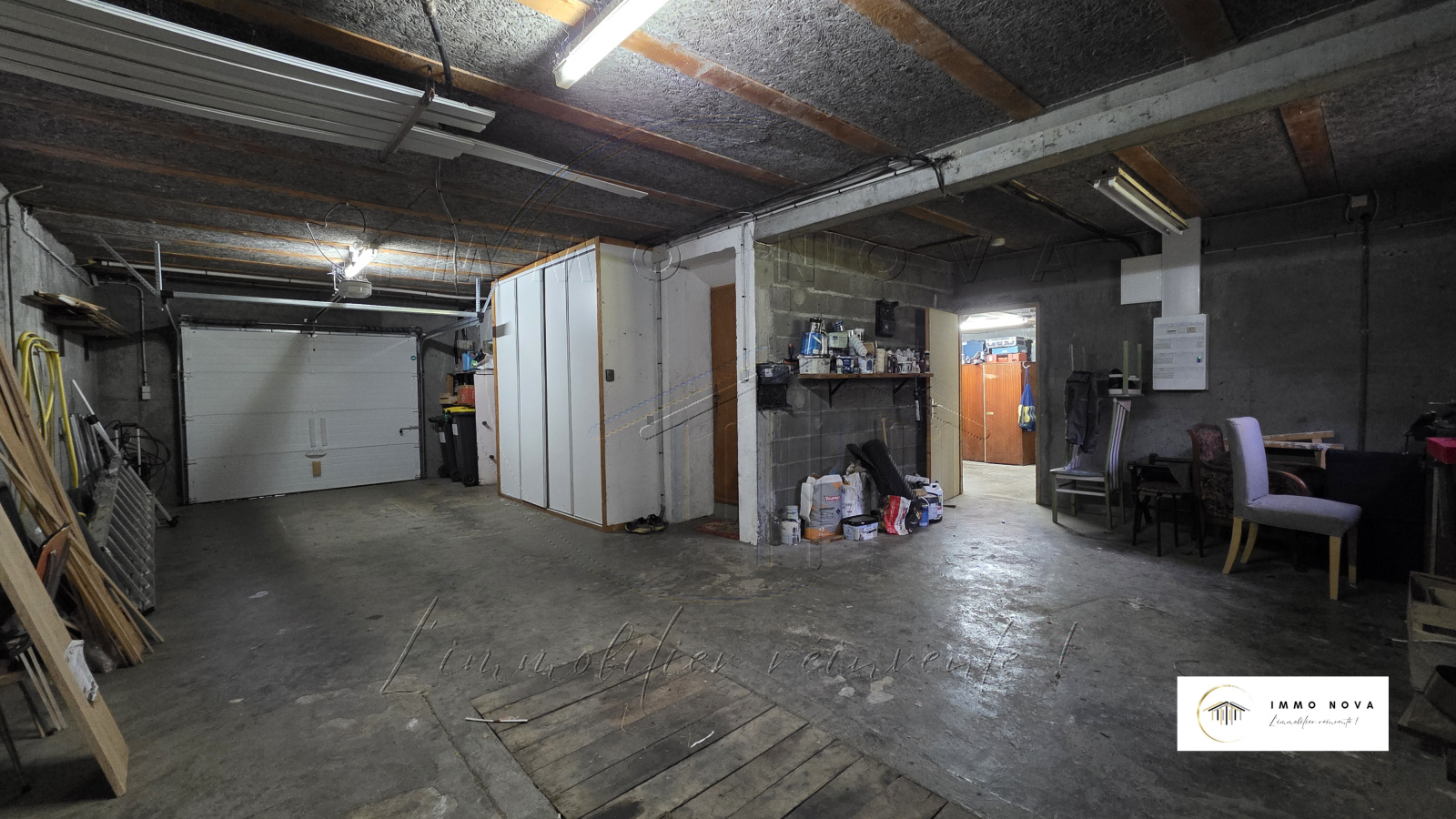 Le sous sol complet constitue un véritable atout. Il comprend une chambre supplémentaire, deux buanderies dont une avec accès extérieur, une cave, un WC, ainsi que deux très grands garages dont un équipé d’une porte motorisée. Plusieurs espaces permettent également d’aménager un atelier, un espace de bricolage ou de stockage.