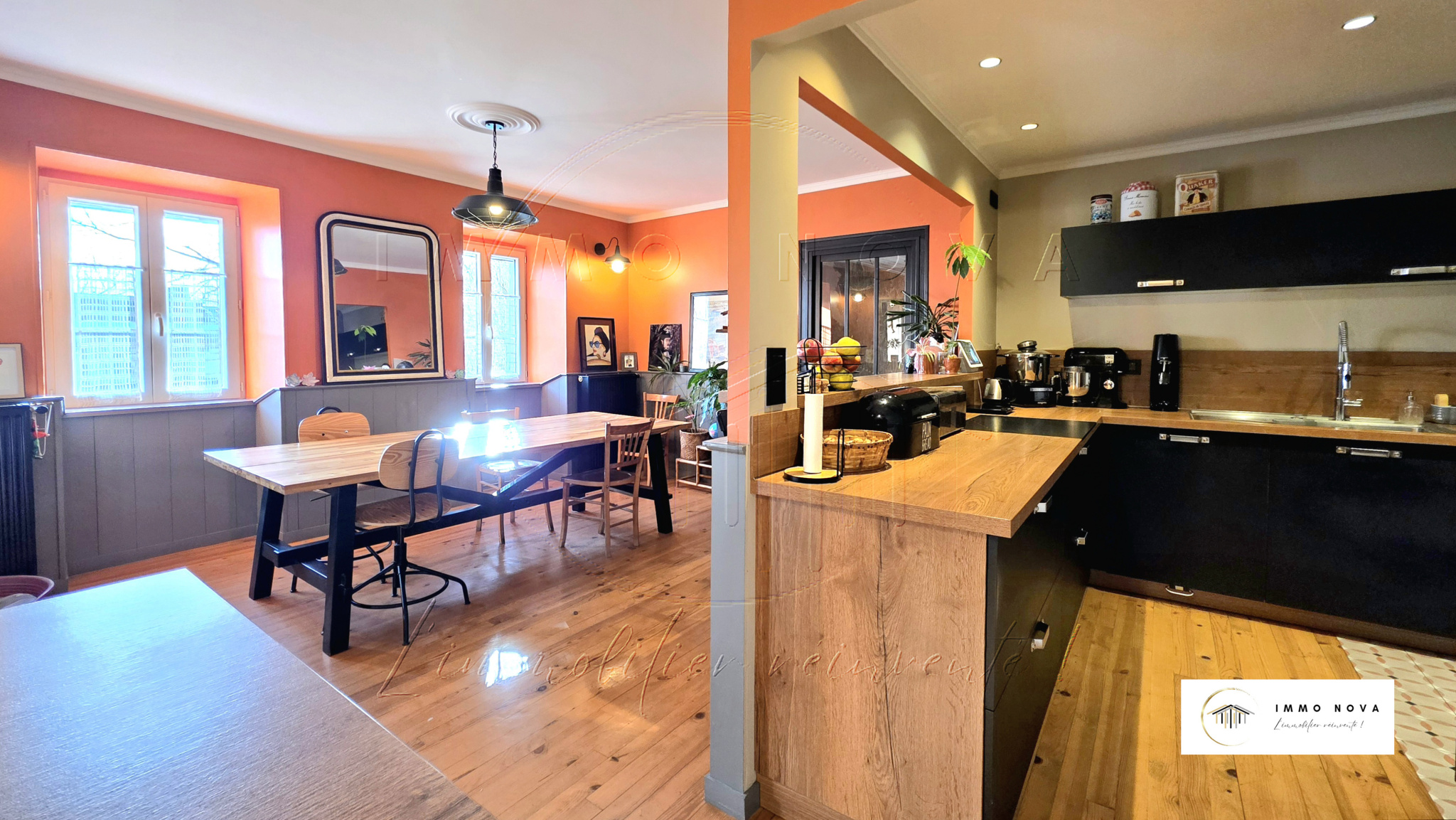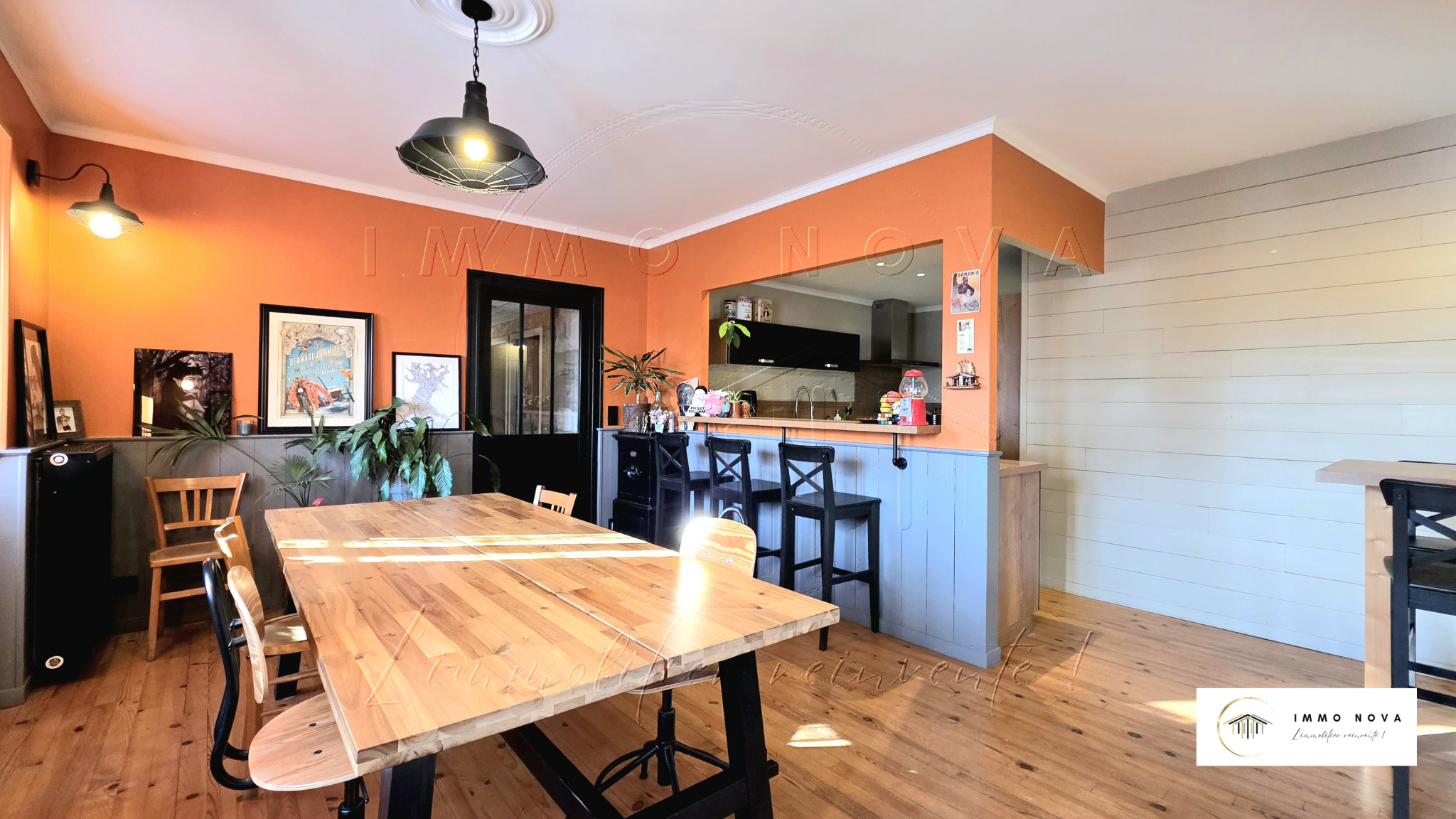 Un grand espace cuisine / salle à manger convivial
